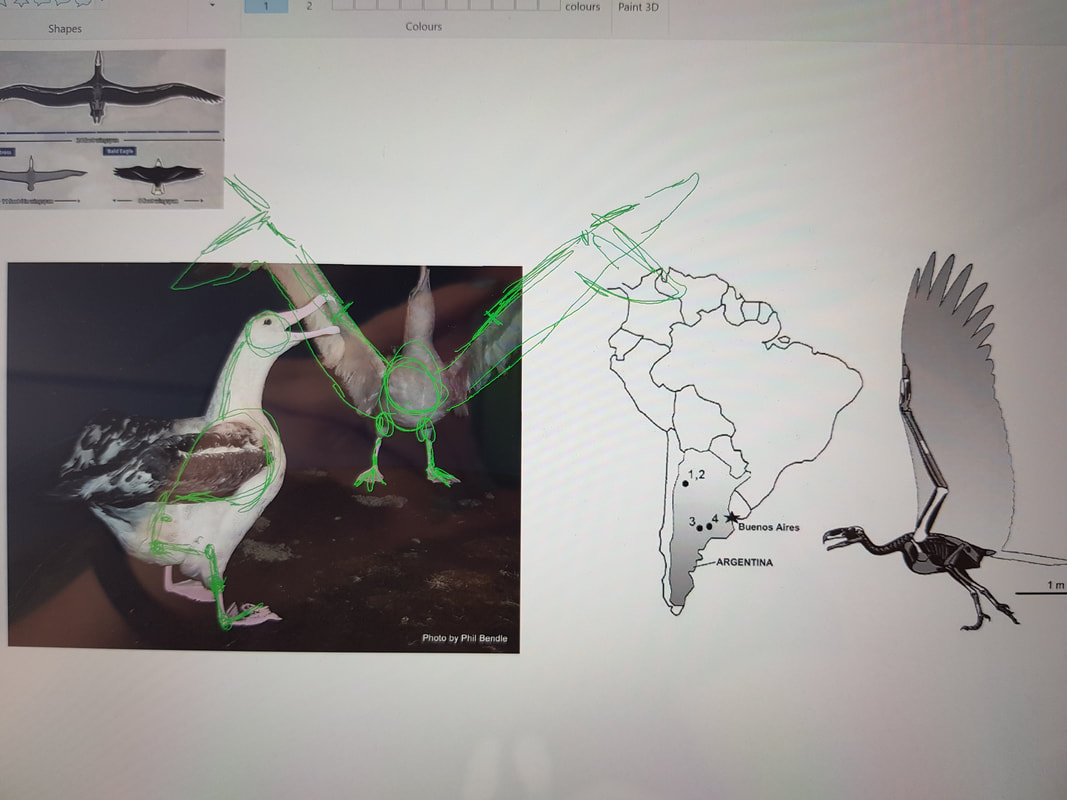 Second, I looked at some albatross skeletons, and eventually got a good enough idea of wing and leg articulations, and the details of the head and beak structure, that I felt confident enough to proceed.
